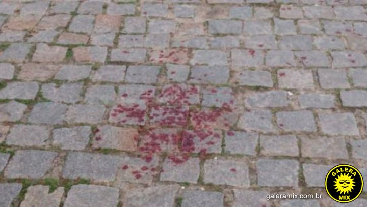 Manchas de sangue na calçada e na porta do estabelecimento, chamaram a atenção de quem passava pelo local.