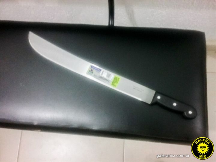 Quando o carro em que estavam chegou ao local designado, o homem "fechou" a frente do veículo e desceu com o facão. Novamente ele desferiu golpes contra o automóvel, tentando acertar o casal. Ao perceber os PM's em seu encalço, partiu em sua direção com a arma branca empunhada. Ele foi orientado a largar o instrumento, o que fez depois de algum tempo.
