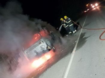 Um carro pegou fogo na Rodovia SC – 410, próximo ao portal de entrada do município de Canelinha, a ocorrência foi registrada por volta das 00h00 desta segunda-feira (13), quando o Corpo de Bombeiros foi acionado para apagar o incêndio em um automóvel.