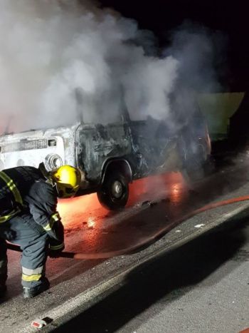 Rapidamente a guarnição de serviço do Corpo de Bombeiros deslocou-se para o local, onde chegando, os Bombeiros encontraram com o veículo VW Kombi, o qual estava completamente em chamas, foi então realizado o combate ao fogo. O veículo foi deixado no local aos cuidados da Polícia Militar para o registro da ocorrência. Não há informações sobre o que teria provocado o inicio da chamas.