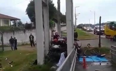 Na manhã deste sábado (22), foi registrado um acidente com vítima fatal na BR-101, em Biguaçu, na Grande Florianópolis. O motorista de 18 anos morreu após bater o carro na base da passarela. A batida ocorreu no km 180 da rodovia no sentido Norte. A Polícia Rodoviária Federal informou que o condutor trafegava pela marginal na rodovia quando colidiu na estrutura. A vítima foi identificada como Everton Florindo dos Santos. Ele morreu ficou preso às ferragens do automóvel. O acidente aconteceu por volta das 7h.