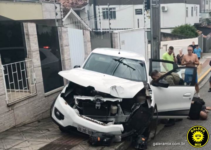 Carro foi parar quando bateu num poste. Foto: PMSC / divulgação