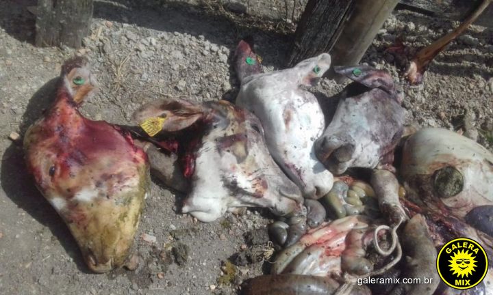 Conforme mostram as imagens, os bandidos abateram os quatro novilhos, deceparam as cabeças e limparam as tripas. Um quinto animal amarrado com uma corda tentou fugir, porém acabou morrendo enforcado. Ninguém viu nada.