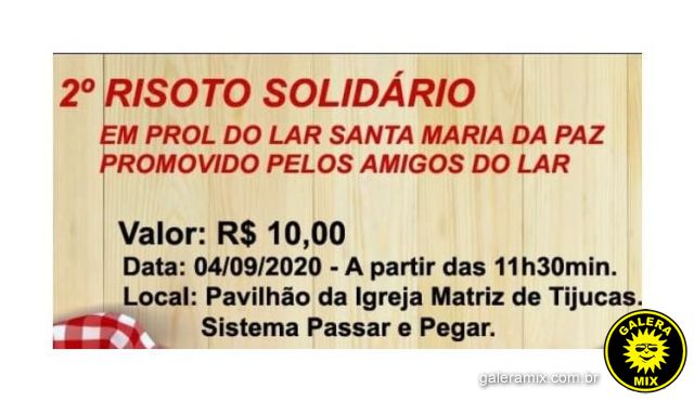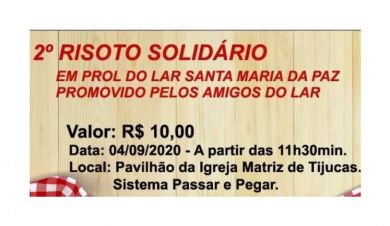 Lar Santa Maria da Paz promove a segunda edição do Risoto Solidário