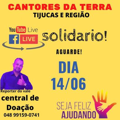 Pensando nisso, o locutor Salvador Santos, o repórter do vale, está organizando uma live solidária, que reunirá cantores da terra. O evento acontecerá no próximo dia 14 de junho, a transmição será feita do Rancho Limeira, em Tijucas.