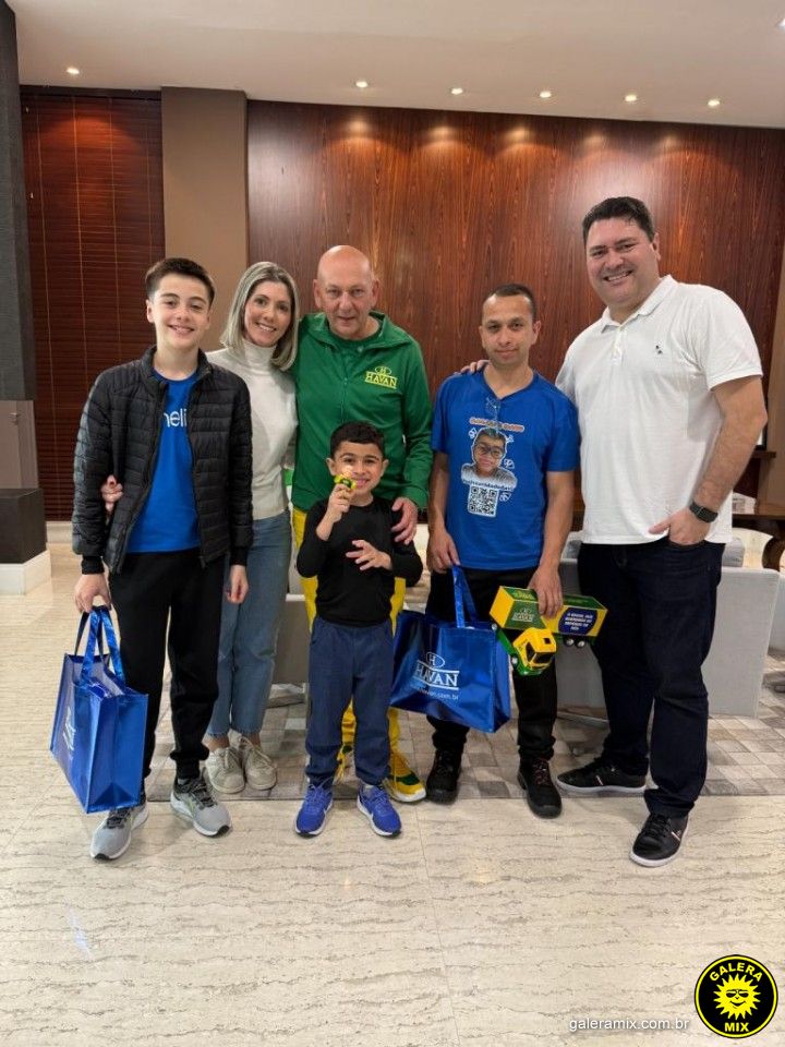 Davi e seu pai, Luiz Fernando Rodrigues, se encontraram com Hang no Centro Administrativo da Havan, em Brusque. A vacina, importada dos Estados Unidos, precisa ser aplicada antes de o menino completar 8 anos.