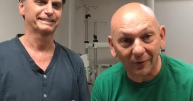 Luciano Hang, dono das lojas Havan, visitou o candidato Jair Bolsonaro no hospital Albert Einstin, em São Paulo, nesta quinta-feira (27). Os dois gravam um vídeo juntos onde Hang chamou Bolsonaro de ídolo. Bolsonaro, por seu lado, falou em favor da família e que o empresariado deveria se ver livre do Estado.
