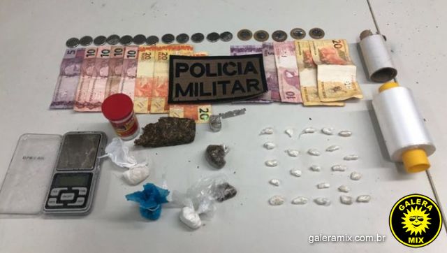 No local uma mulher, identificada com JUVELINA CUSTODIA MARTINS MARCELINO, a qual recebia os usuários e ordenava que seu filho, de 16 anos de idade, entregasse as drogas, estas escondidas no interior de uma propriedade, junto ao muro da frente entre sacos de lixo, para os usuários. Diante do flagrante os policiais abordaram e prenderam os envolvidos. Na ação foram apreendidos R$ 60,00 reais em dinheiro fracionado, sendo 11,00 reais em moedas, um rolo de saco plástico utilizado para embalar a droga e 23 pedras de crack já embaladas para venda.