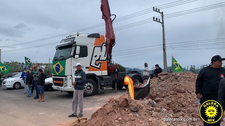 A gente tá tentando deixar livre um espaço da via, pelo menos pra passar um caminhão. Eles têm esse controle de tentar conversar com os condutores pra explicar a situação. O motivo que eles estão aqui todos já sabem. Querem manter isso aqui até amanhã, ou até a manifestação do presidente Bolsonaro. Passando esse período, eu não sei. Não estamos dando prazo pra que eles terminem a manifestação. Vai da vontade deles, desde que não prejudiquem a locomoção do pessoal”.