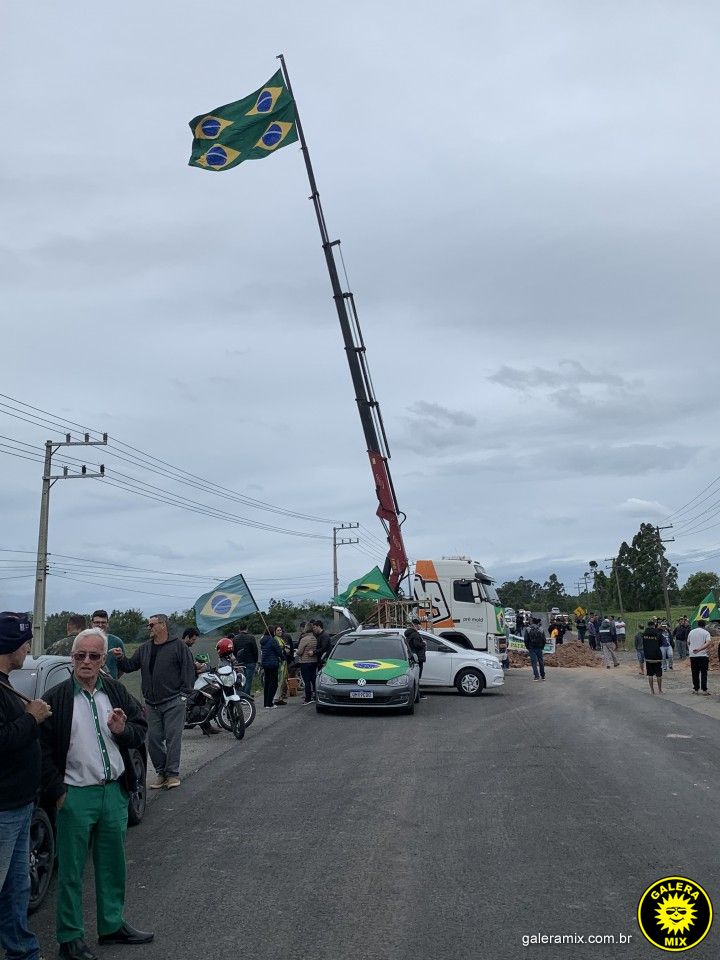 Durante essa tarde, mais uma carga de pneus foi entregue no local. O material continua, desde ontem, sendo queimado em meio ao asfalto. Além disso, bandeiras do Brasil foram colocadas na ponta de um caminhão guincho, podendo ser vista a vários metros do local.