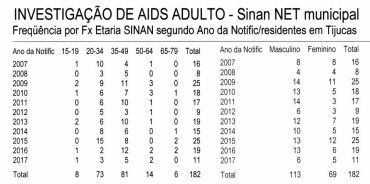 No caso específico de Tijucas a Vigilância Epidemiológica não revelou o número de habitantes portadores do vírus, mas extraoficialmente fala-se em mais de 600 moradores. Conforme mostra o gráfico a seguir, somente de 2007 a 2017 foram diagnosticados ou notificados 182 novos casos. E em alguns anos ultrapassamos a média nacional. Basta dizer que a média do Brasil é de 20 novos portadores do vírus HIV ao ano, para cada grupo de 100.000 habitantes. Isso significa que os casos registrados na cidade precisam ser acrescidos em 2,5 para refletir a realidade exata. Confira os gráficos: