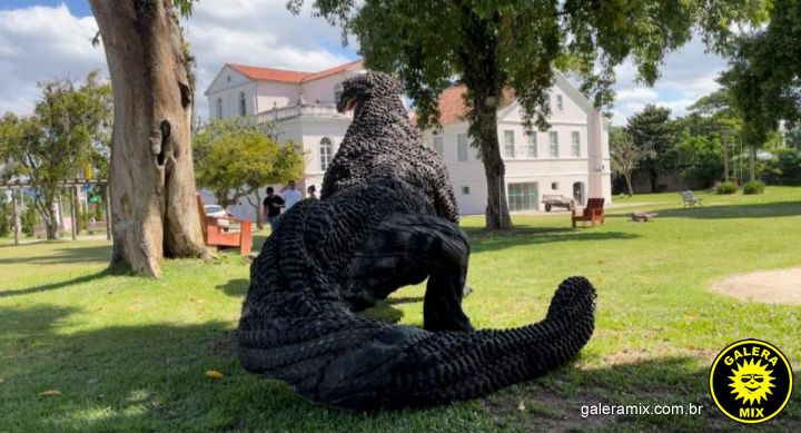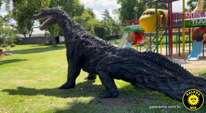Os Tijuquenses tem agora uma nova obra de arte para conhecer. Depois de 5 meses de trabalho, o artista plástico Rafael Zaca entregou hoje a Megalodina, a versão fêmea do dinossauro de Tijucas.