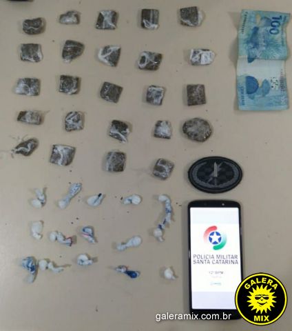 Dentro da pochete, em poder do suspeito, os policiais encontraram 24 porções de maconha e 9 petecas de cocaína, além de R$ 100, em espécie.