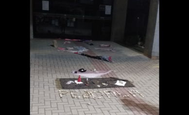 Um mistério tem intrigado moradores de Camboriú. Imagens de panos, objetos e até roupas íntimas de crianças, posicionadas na porta da prefeitura, circulam nas redes sociais. Além disso, o responsável pela “denúncia” usou pedras para destacar a palavra“pedofilia”.