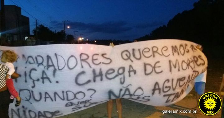 Cerca de 30 pessoas participaram de uma manifestação realizada em uma das ruas do loteamento Jardim Progresso em Tijucas, no início da noite desta segunda-feira (23).
