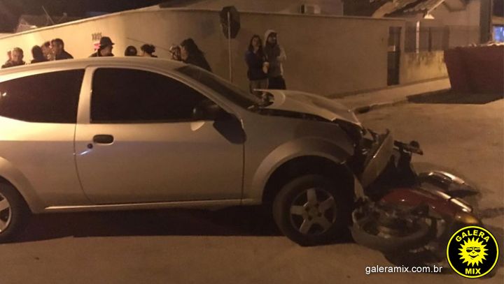 Um grave acidente envolvendo uma motocicleta e um automóvel deixou um pessoa ferida na noite desta sexta-feira (05) em Tijucas. A colisão ocorreu na rua 13 de maio, no bairro Areias.