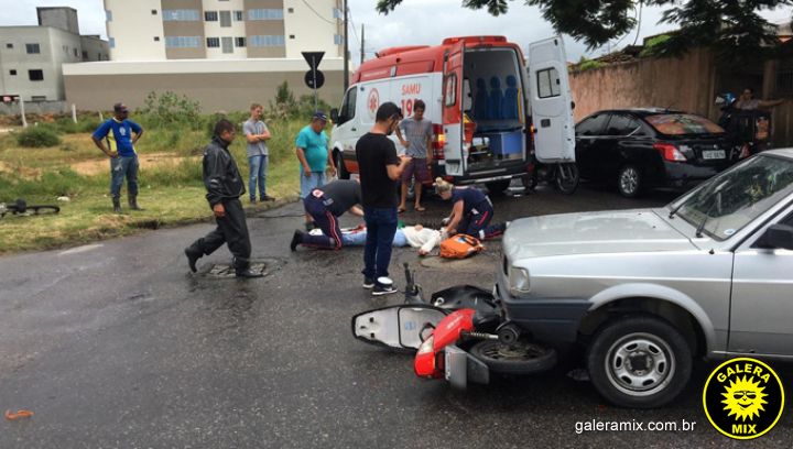 O veículo acertou a lateral da moto arremessando a vítima por alguns metros. A mulher permaneceu deitada no chão até a chegada do Corpo de Bombeiros e Samu (Serviço de Atendimento Móvel de Urgência). Ela estava consciente, porém se queixava de dores nos braços e pernas, além de um sangramento na boca.