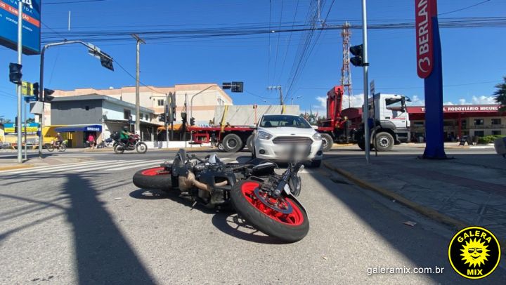 Uma colisão envolvendo um veículo de passeio e uma motocicleta foi registrado por volta das 14h desta terça-feira, 19 de abril, nos cruzamentos da avenida Jacob Lameu Tavares com Athanásio Bernardes.