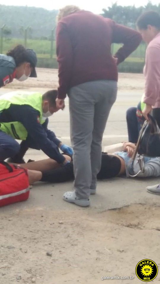 De acordo com informações de testemunhas a condutora da Honda\Biz se desequilibrou quando estava saindo da rua para pegar a Rodovia SC-410, tentou desviar de um buraco vindo cair e sofre ferimentos.