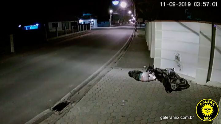 Uma colisão de uma motocicleta Honda/Titan contra um muro foi registrada por câmeras de videomonitoramento na madrugada deste domingo (11). Um adolescente de 16 anos, se chocou com o muro após perder o controle da direção da moto na rua Marcolino Duarte, no Centro de São João Batista.