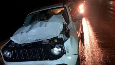O condutor de um Jeep/Renegade ficou com prejuízos após colidir contra um animal solto na Rodovia SC-410, entre São João Batista e Tijucas. Acidente foi registrado na madrugada desta terça-feira (07), e apesar do impacto o motorista não ficou ferido.
