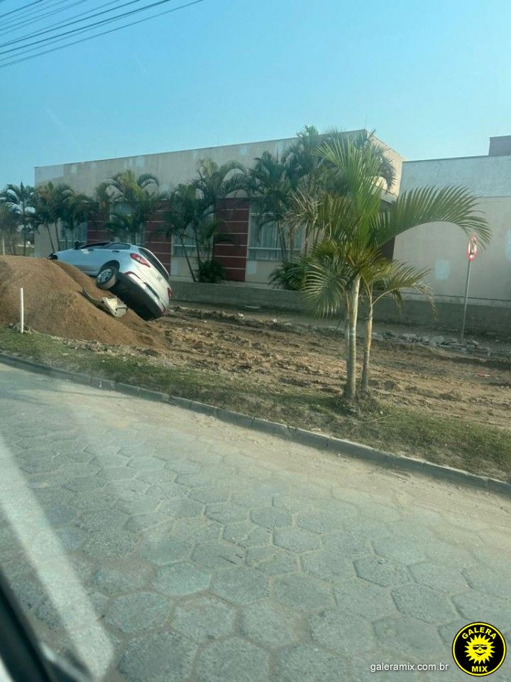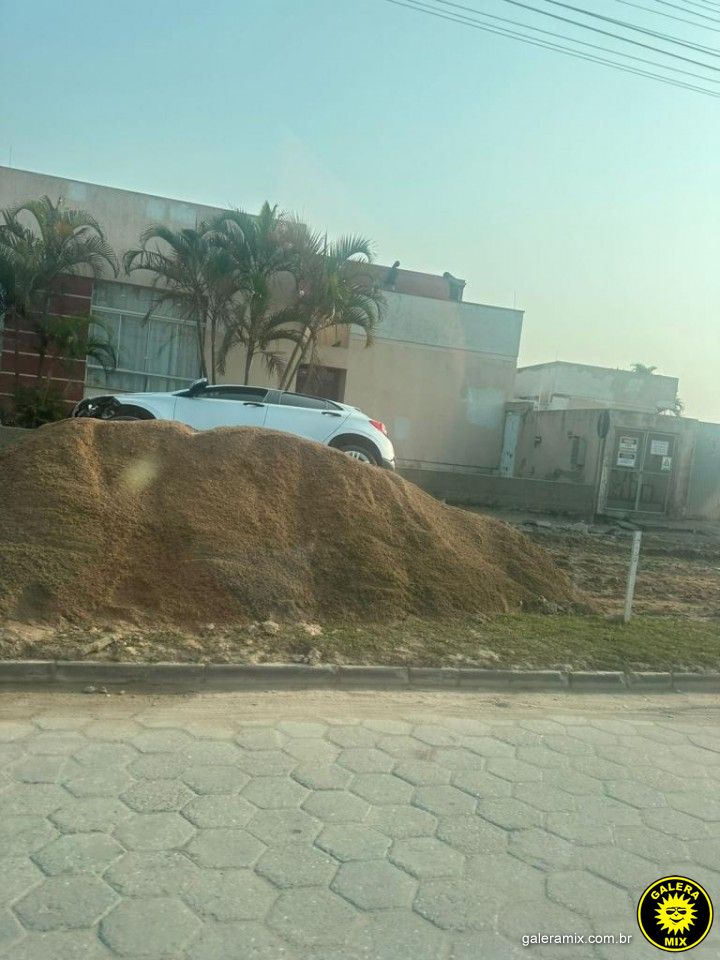 Um acidente ocorrido em Tijucas, chamou a atenção neste domingo, dia 08 de setembro. Um motorista de um Fiat Argo colidiu e subiu em um banco de areia da obra na Avenida Coleira, que fica no bairro centro.