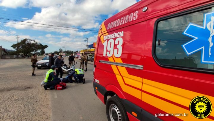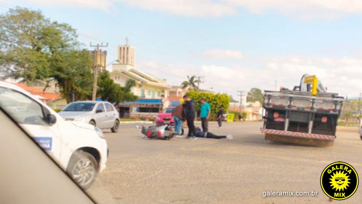 Uma colisão envolvendo uma motocicleta e um automóvel VW/Gol deixou uma mulher ferida na manhã desta quinta-feira (16), em Canelinha. O acidente foi registrado na SC-410, em frente ao supermercado Macris.