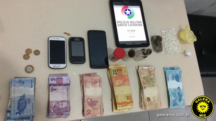 Na mão de Tata estava uma bucha de cocaína. Na residência policiais encontraram R$ 2,7 mil, 100 pedras de crack, além de porções de maconha e cocaína e três celulares.
