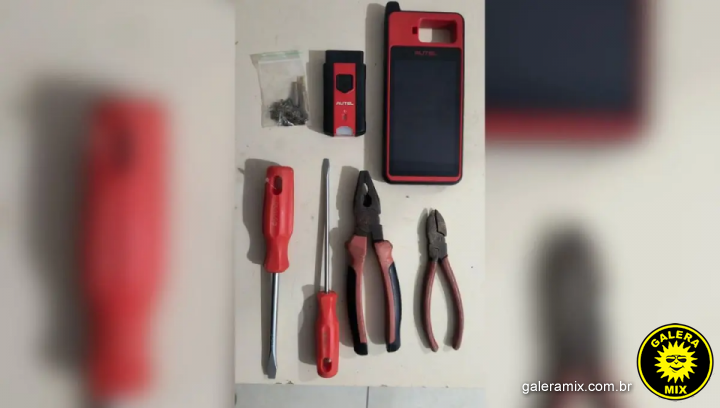No interior do veículo, os policiais localizaram um scanner automotivo, ferramentas como chave de fenda e alicate, além de pequena quantidade de droga.