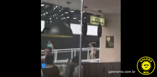 A testemunha disse, ainda, que a mulher beijou funcionários da loja na boca. A mulher "desfilou" e arrastou as cadeiras da praça de alimentação da loja.