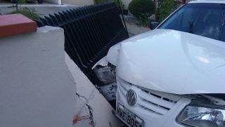 Um acidente de trânsito acabou deixando o muro de uma residência destruído. Um dos veículos envolvidos atingiu o muro da casa, que fica na rua Rosa Milhorini Ceccato, no bairro Trinta Réis, em Nova Trento.