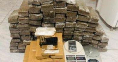 Durante a averiguação foram encontrados: 81kg de maconha, 737g de cocaína, 17 munições de cal .38, e 25 munições de cal .22, além de três balanças de precisão e dois cadernos com a contabilidade do tráfico.