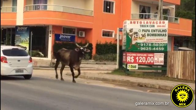 Com muito esforço o boi foi conduzido para uma área rural e guardado em um curral até a chegada da CIDASC, que efetuou o recolhimento.