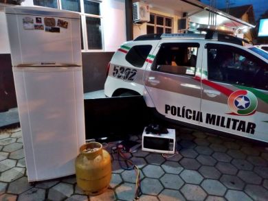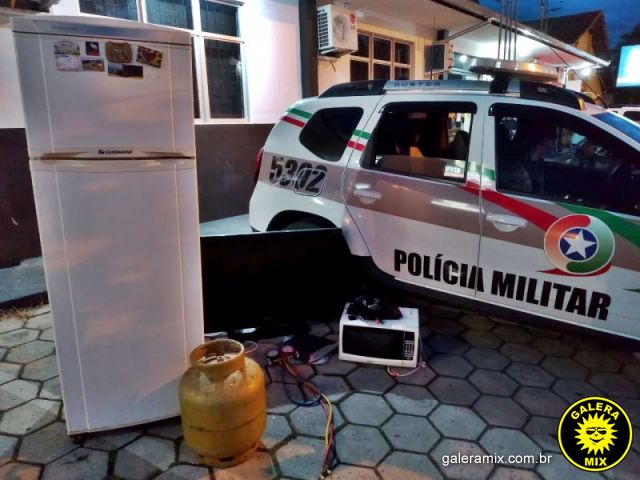 No local, além da geladeira furtada, foram apreendidos diversos aparelhos eletrônicos, botijão de gás além de outros produtos de origem duvidosa.