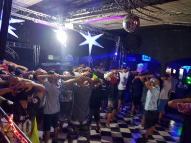 Os militares adentraram no estabelecimento, mandaram desligar o som e passaram a revistar todos os presentes. Além de 90 gramas de maconha e 19 comprimidos de ecstasy, foram encontradas três buchas de cocaína jogadas no chão, obviamente que dispensadas por quem tinha sua posse para não serem identificados. O fato mais agravante foi a casa vender abertamente bebidas alcoólicas para 41 adolescentes que se encontravam no local.