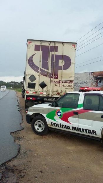 Na tarde de hoje (09) aproximadamente às 14:00h a guarnição de Canelinha recebeu informações que um caminhão trator Scania placas APV 2498 juntamente com a carreta Randon placa BAP 5099 ambos com emplacamento na cidade de Maringá PR estavam as margens da rodovia SC 410 em atitude suspeita, ao consultar no sistema não havia registro de furto/roubo foi feito um contato telefonico com a empresa proprietária dos veículos e foi constatado que havia sido roubados porém não foi repassado melhores detalhes. Os veículos foram conduzidos para a delegacia de Polícia Civil de Canelinha para os devidos procedimentos. A carga de óleo vegetal da marca "Salada" estava engarrafado e armazenado em caixas e não foi violada.