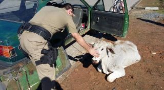 Por volta dàs 14h, um VW Voyage de cor Verde com placas de Brusque foi interceptado na rua geral do bairro Moura onde três indivíduos transportavam um novilho que segundo informações teria sido furtado na noite anterior no bairro Papagaios. As informações chegaram na parte da manhã e prontamente iniciou-se buscas na região e após varias rondas a patrulha obteve êxito na abordagem e prisão dos agentes.