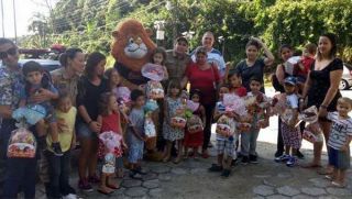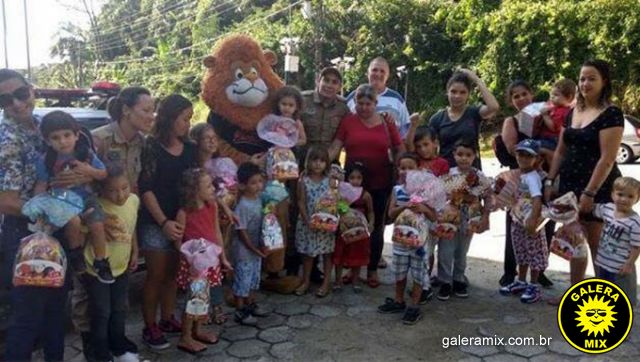 Po liciais militares realizaram uma ação social no bairro Morretes, comunidade carente de Itapema. A ação aconteceu na tarde do último domingo (16), no dia em que se comemora a páscoa, eles distribuíram cestas de doces às crianças carentes.