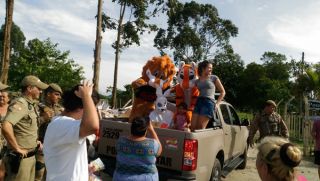 Foram 375 cestas entregues, as crianças ficaram maravilhadas com a presença dos policiais, houve muita interação entre as crianças e os militares que posaram para as fotos de forma bem descontraída.