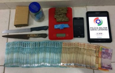 Na noite desta sexta-feira (19), a guarnição da Polícia Militar de Porto Belo e Bombinhas recebeu uma denúncia de que D.F.S., 40 anos, realizava tráfico de drogas em sua residência no bairro Zimbros, em Bombinhas.