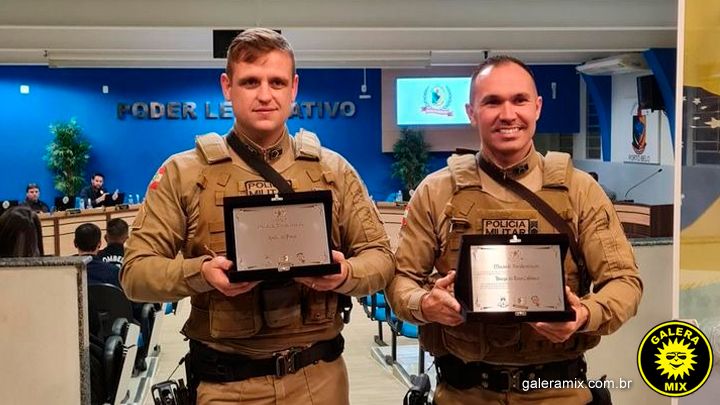 Eles receberam uma homenagem da Câmara de Vereadores de Porto Belo pela ocorrência onde salvaram a vida de um bebê, de apenas 18 dias, que havia se engasgado com leite materno.