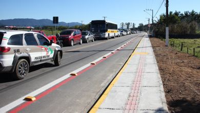 Caminhões acima de três eixos estão proibidos de circularem na Avenida José Neoli Cruz, trecho que liga os Bairros Santa Luzia e Alto Perequê, em Porto Belo. Recentemente, a via foi totalmente renovada e ganhou camadaasfáltica em um trecho que faltava.