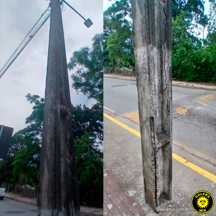 Moradores da Rua do Governo, em Tijucas, relatam poste de energia rachado no bairro, que apresenta risco iminente de queda. A estrutura danificada sustenta fiação elétrica e, segundo relatos, pode provocar desde a queda do poste até descargas elétricas, colocando em perigo quem circula pelo local.
