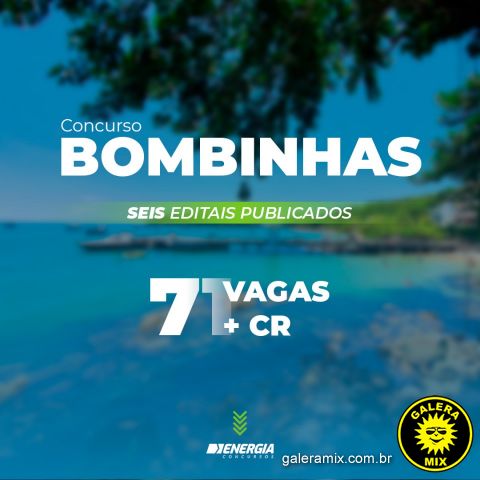A Prefeitura Municipal de Bombinhas, estado de Santa Catarina, torna públicos os editais de seis novos Concursos Públicos afim de preencher 71 vagas existentes e formação de cadastro reserva. A escolaridade exigida é de níveis fundamental incompleto e completo, médio, técnico ou superior.