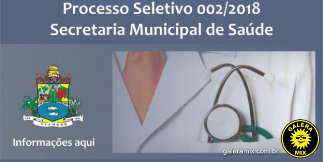 A Prefeitura de Tijucas comunica que está aberto o processo seletivo simplificado, regido pelo Edital 002/2018, para contratação de profissionais para a rede municipal de saúde. As inscrições acontecem entre 04 e 18 de abril, das 07h às 12h, na sede da Secretaria Municipal de Saúde.