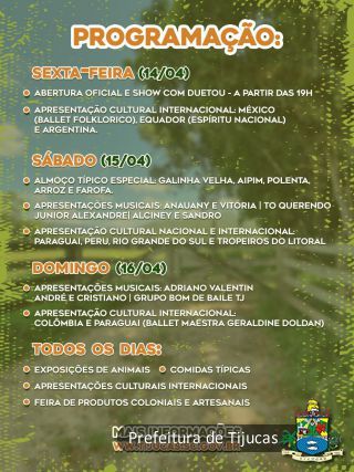 Serão muitas atrações, com destaque para exposições, gastronomia típica e muita música boa!