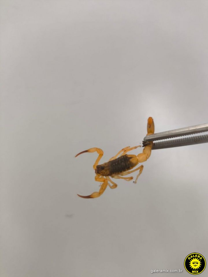 O animal foi identificado como Tityus serrulatus, espécie de relevância em saúde pública e responsável pela maioria dos acidentes escorpiônicos registrados no país.