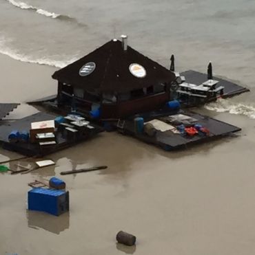 A ressaca que atinge todo o litoral arrastou de Porto Belo, até Meia Praia, em Itapema, um dos bares flutuantes do Caixa D'aço. O equipameto se desprendeu das âncoras, provavelmente devido à força das águas. Ainda não há informações sobre o que causou o incidente.