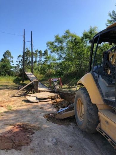 A ponte pênsil que liga os bairros Ribanceira do Sul e Cardoso está interditada. O pilar que sustenta os cabos de aço responsáveis por segurar a estrutura foi danificado pela ventania e forte chuva ocorridas no último sábado (24). A Secretaria Municipal de Infraestrutura já está trabalhando no conserto.