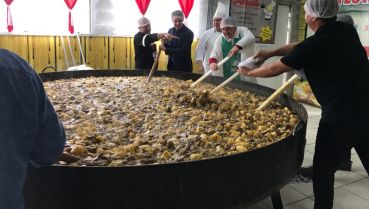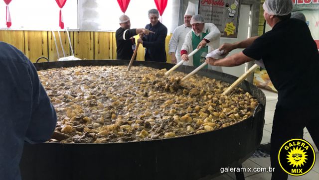 Para cozinhar os mais de 1400 quilos de alimentos foi feita sob encomenda uma panela gigante com três metros de diâmetro. A comida está sendo fornecida gratuitamente aos agricultores presentes na festa, com a cobrança de R$ 15,00 aos demais.